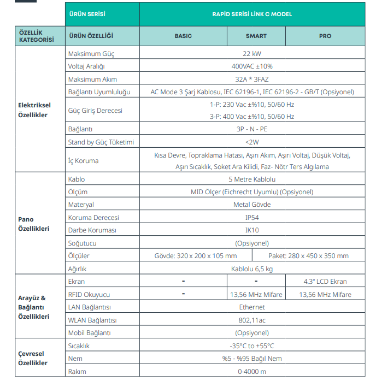 Link C Pro Model tasarımı şarj ihtiyaçlarınızı her durumda karşılayarak kullanımınızı kolaylaştırmak ve kurulum alanının verimli kullanımı için optimize edilmiştir.