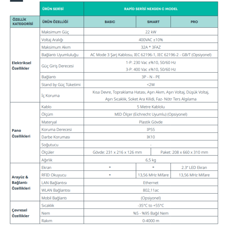 Nexgen C Pro Model tasarımı şarj ihtiyaçlarınızı her durumda karşılayarak kullanımınızı kolaylaştırmak ve kurulum alanının verimli kullanımı için optimize edilmiştir.